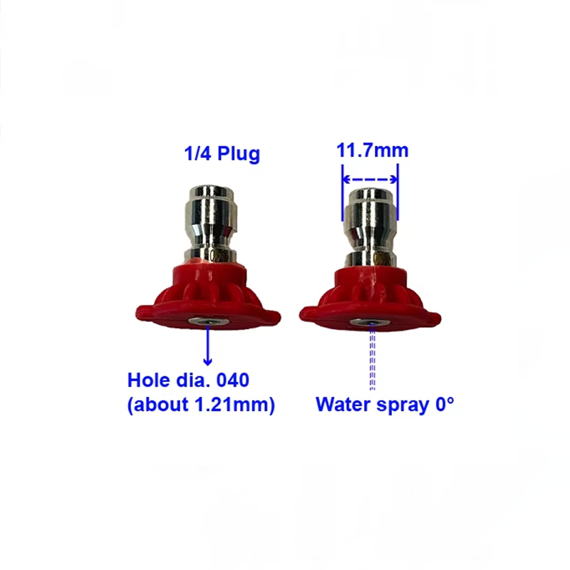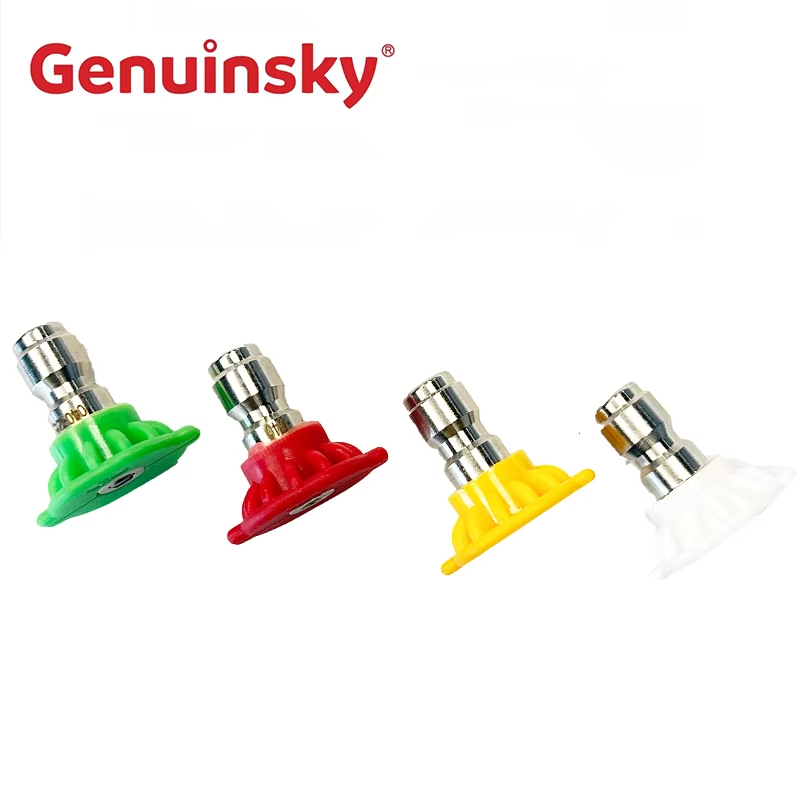 Dit product is een 1/4 inch hogedrukpistool kleurrijke mondstuk Quick Release-plug, een veel voorkomende hoge drukreinigingsaccessoire in de moderne samenleving. Het product is uitgerust met een 1/4-inch interface hogedrukgeweer kleurrijke mondstuk snel vrijgave. Plug, die ook vier verschillende hoeken (0 °, 15 °, 25 °, 40 °) reinigingssproeiers bevat. De sproeiers hebben verschillende kleuren en komen overeen met verschillende hoeken, dus het is handig voor gebruikers om de typen te onderscheiden.