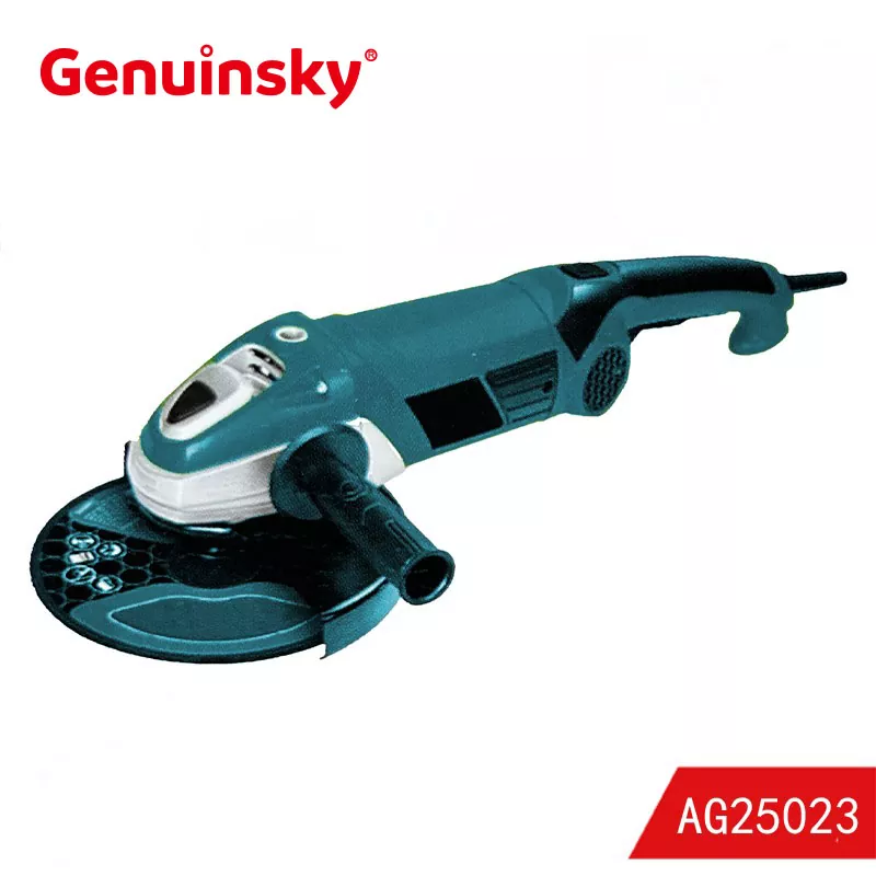 230 mm hoekmolen 2500W Ag25023 met lange handgreep, professionele grote molen elektriciteitsgereedschap, veel gebruikt in snij- en polijstscenario's voor metaal, steen en hout vanwege de matige grootte en flexibiliteit.
