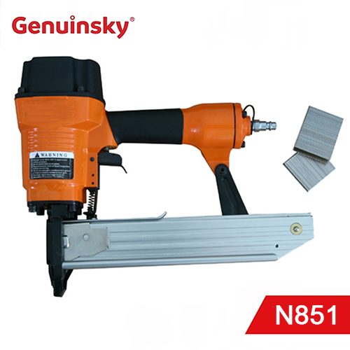 N851 Air Crown Stapler behoort tot industriële kroonloper met een groot lichaam en grote nietjes. Het wordt gebruikt om U-vormige nagels of deurnagels naar het oppervlak van materialen te repareren via pneumatische apparaten zoals luchtcompressoren.