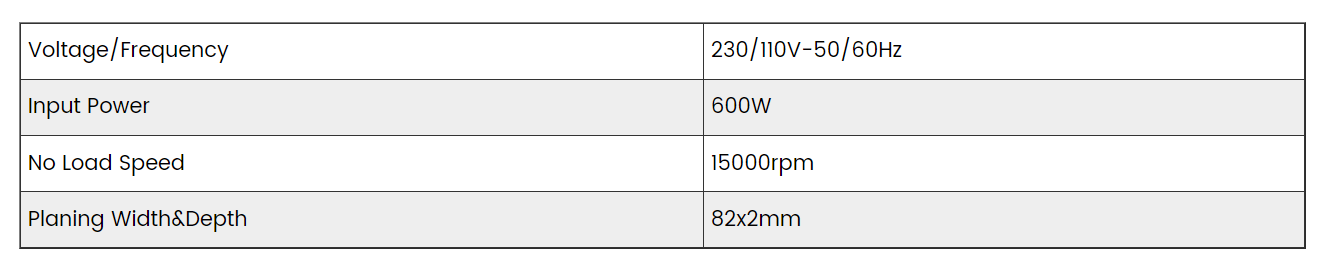 Waarom de 82x2mm elektrische schaafmachine een efficiënt gereedschap voor houtbewerking is, kan vanuit verschillende aspecten worden geïntroduceerd. Afgaande op de kernparameters van het product kan ten eerste de brede spanning van 230/110V-50/60Hz niet alleen worden aangepast aan het 220V civiele stroomvoorzieningssysteem in China, maar ook aan de overzeese 110V-werkomgeving, en het frequentieverschil van 50/60Hz tussen verschillende regio's, dus ongeacht of het de vraag naar huishoudelijk werk is of het gebruik van geïmporteerde apparatuur, er kan een goede verbinding worden bereikt, waardoor de mismatch tussen spanning en frequentie. Ten tweede kan het nominale ingangsvermogen van 600 W de apparatuur een continu stabiele output geven, en er is ook voldoende gangreserve voor stabiel schaven in het licht van relatief harde en dikke materialen, wat instabiliteit in het werk als gevolg van overmatige belasting kan voorkomen, zodat de efficiëntie en kwaliteit van het werk tegelijkertijd online kunnen zijn. Ten derde kan de onbelaste snelheid van 15.000 tpm ervoor zorgen dat de schaafmachine een hoge snijlijnsnelheid heeft, waardoor snel een gladde snede kan worden gepland bij het verwerken van hout. Tegelijkertijd kan de snelheid van het verwerken van materialen erg snel zijn, dus het is erg belangrijk bij het verwerken van veel werk, wat de werkefficiëntie aanzienlijk verbetert. Ten vierde kan de schaafbreedte van 82 mm het aantal retourritten bij het bewerken van relatief brede houtoppervlakken verminderen, wat tijd bespaart. De schaafdiepte van 2 mm kan de tweerichtingsbehoeften van voorbewerken en afwerken realiseren, waardoor niet alleen fijn snoeien kan worden uitgevoerd, maar ook overtollig hout kan worden verwijderd tijdens de verwerking. Het is duidelijk dat deze elektrische schaafmachine van 82x2 mm een verscheidenheid aan kernvoordelen heeft, dus hij heeft belangrijke verantwoordelijkheden op het gebied van houtbewerking.