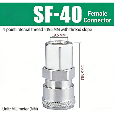 3. SF-40. Britse pijpdraad G1/2", de diameter van het schroefdraadgedeelte is ongeveer 19,5 mm en de totale lengte van het product is 56,9 mm.