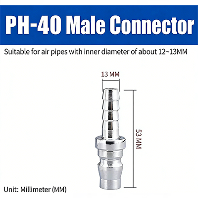 3. PH-40. Het is geschikt voor luchtpijpen met een binnendiameter van ongeveer 12-13 mm. De diameter van het verbindingsbuisuiteinde is 13 mm en de totale lengte is 53 mm.