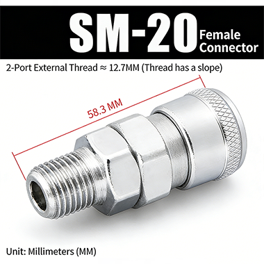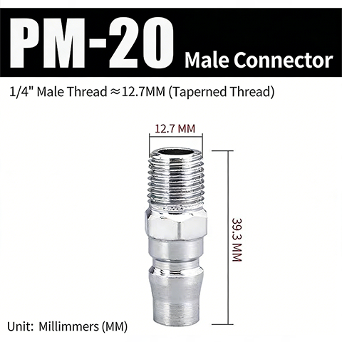 Genuinsky's PM-SM-serie C-type snelkoppelingen (met JIS PT-schroefdraad) maken gebruik van een C-type snelkoppelingsstructuur, waardoor vrije koppeling van mannelijke en vrouwelijke connectoren mogelijk is. Het gegalvaniseerde oppervlak en de koperen ventielkern verhogen de duurzaamheid van het product. Als professionele Chinese leverancier van pneumatische gereedschapsaccessoires produceert Genuinsky alle producten op een gestandaardiseerde manier. Deze serie biedt een compleet scala aan specificaties, waardoor nauwkeurige afstemming met verschillende pneumatische pijpleidingen mogelijk is.