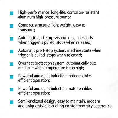 De STG-ROCK-L draagbare hogedrukreiniger heeft niet alleen de voordelen van draagbaarheid, maar ook het uitstekende ontwerp en de prestaties van het product kunnen zijn efficiënte reinigingsvermogen ten volle benutten. Het is een belangrijk hulpmiddel voor het schoonmaken van huizen en sommige scenario's voor kleine bedrijven.